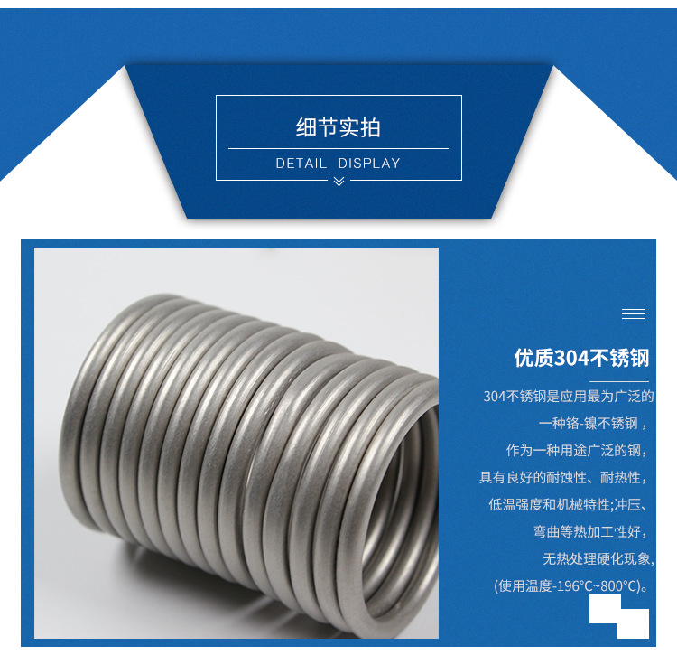 弹簧圈外壳材质:304材质、800材质,耐高温抗氧化,产品质保1年
