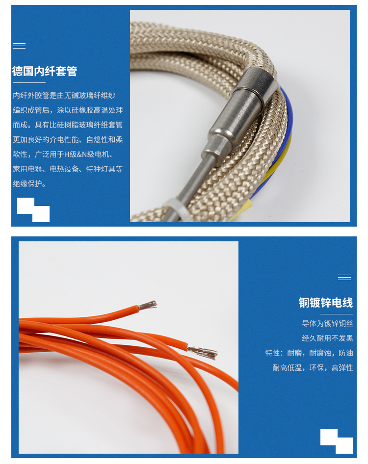外套管外观整洁,耐高温,导线为纯镍线
